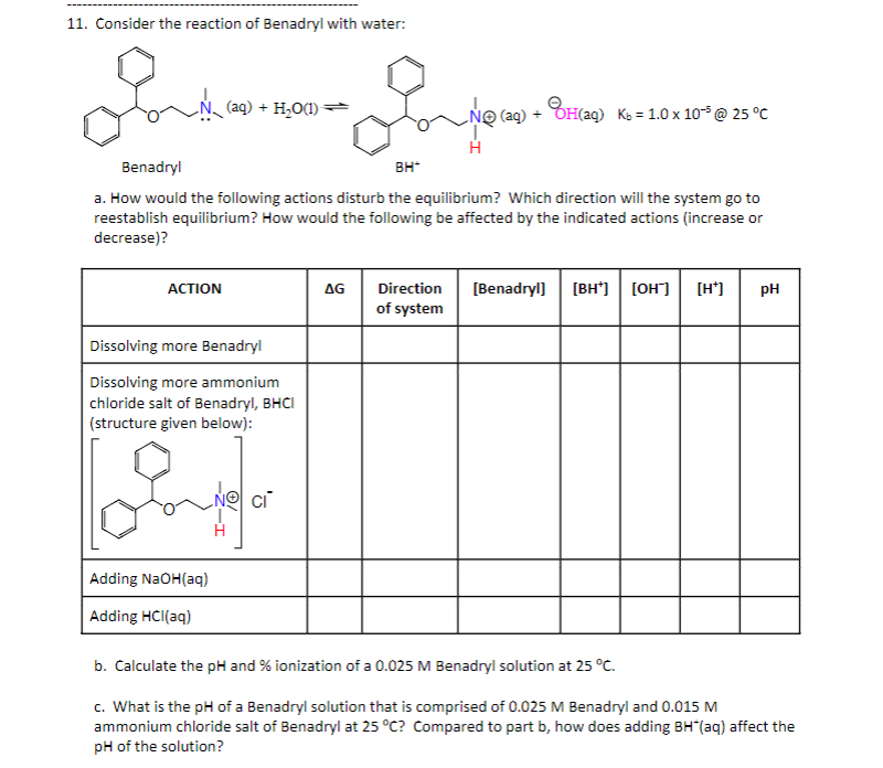 Solved 11. Consider the reaction of Benadryl with water