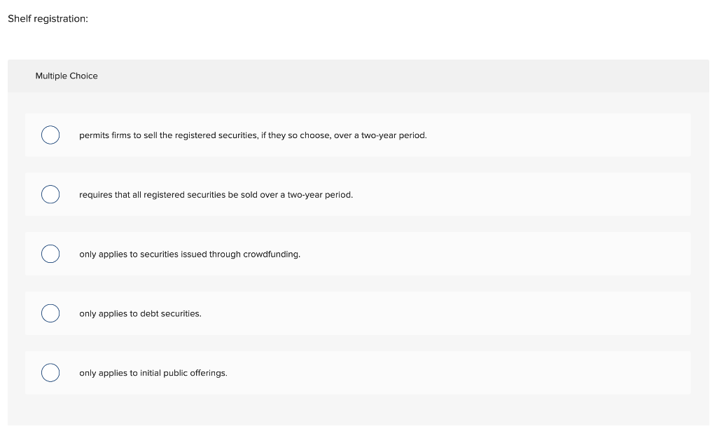 Solved Shelf registration Multiple Choice permits firms to