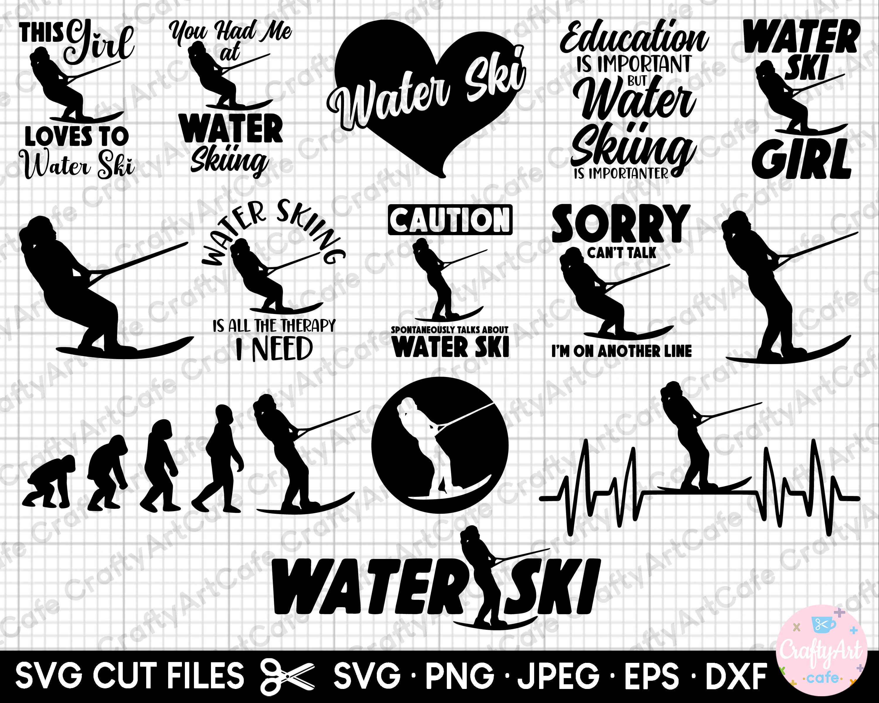 Waker Ski Svg Bundle Water Ski Clipart Water Ski Silhouette Etsy