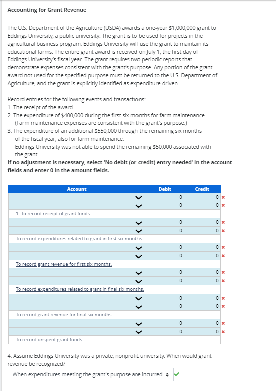 Solved Accounting for Grant Revenue The U.S. Department of