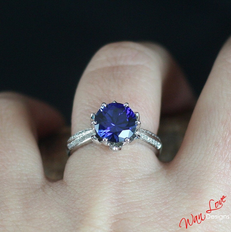 Lotus Flower Diamond & Blue Sapphire Engagement Ring Round 2ct 8mm 14k Lotus Flower Engagement Ring Blue Shine bright like a diamond with yaffie gold ruby and diamond halo ring. Our perfect fit engagement rings are. A subtle floral diamond halo blooms around the center gem in this exquisite ring (1/4 total carat weight). Check out our lotus engagement ring selection for the very best in unique or custom, handmade pieces from our engagement rings shops. Add. Lotus Flower Engagement Ring Blue.