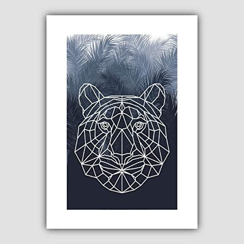 Artze Wall Art Geometric Tiger Face with Palms Leaves Art Print, A4
