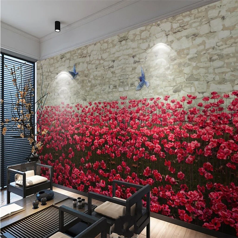 beibehang Large Custom Wallpapers Frescoes Beautiful Red Flowers Birds