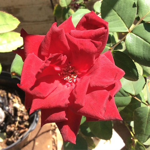 Bright red rose bloom peace patio potted natural rose… Flickr