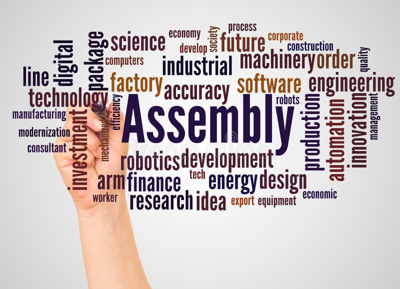 Assembly Word Cloud and Hand with Marker Concept Stock Illustration