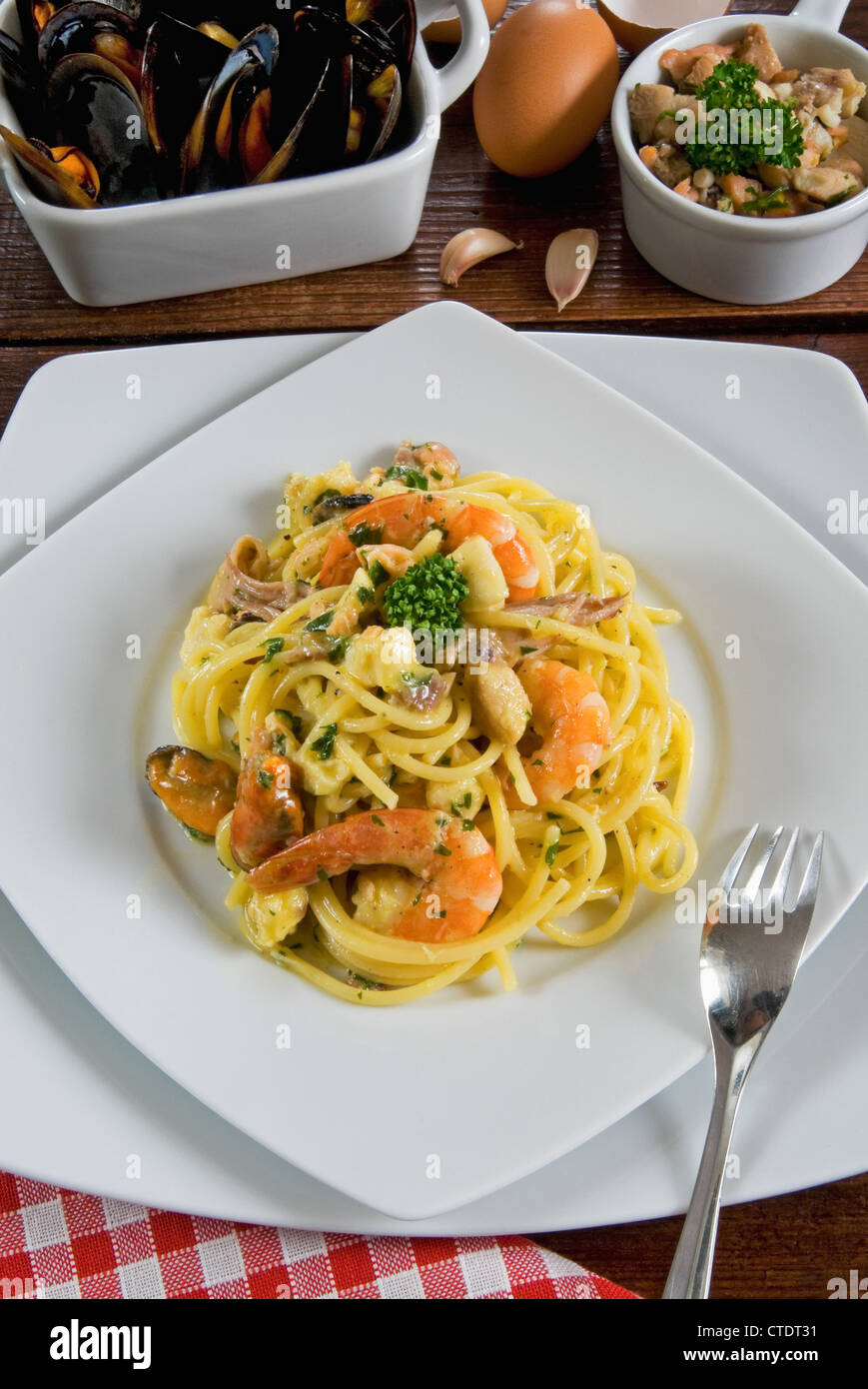 Seafood carbonara, Italian cuisine, Italian food, Italy Stock Photo Alamy