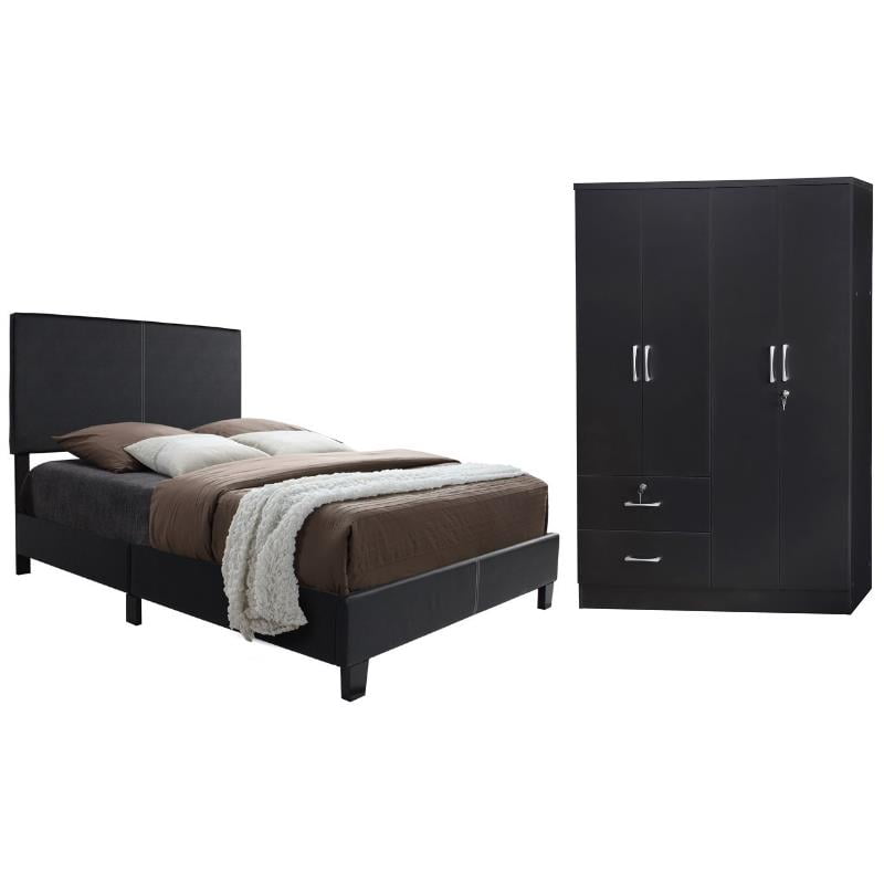Home Square 2Piece Set with Twin Panel Bed and 4Door Armoire in Black
