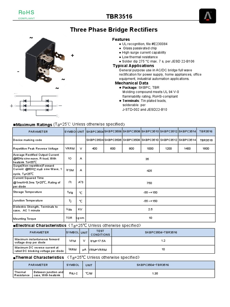 Three Phase Bridge Rectifiers Technical Specifications and Performance