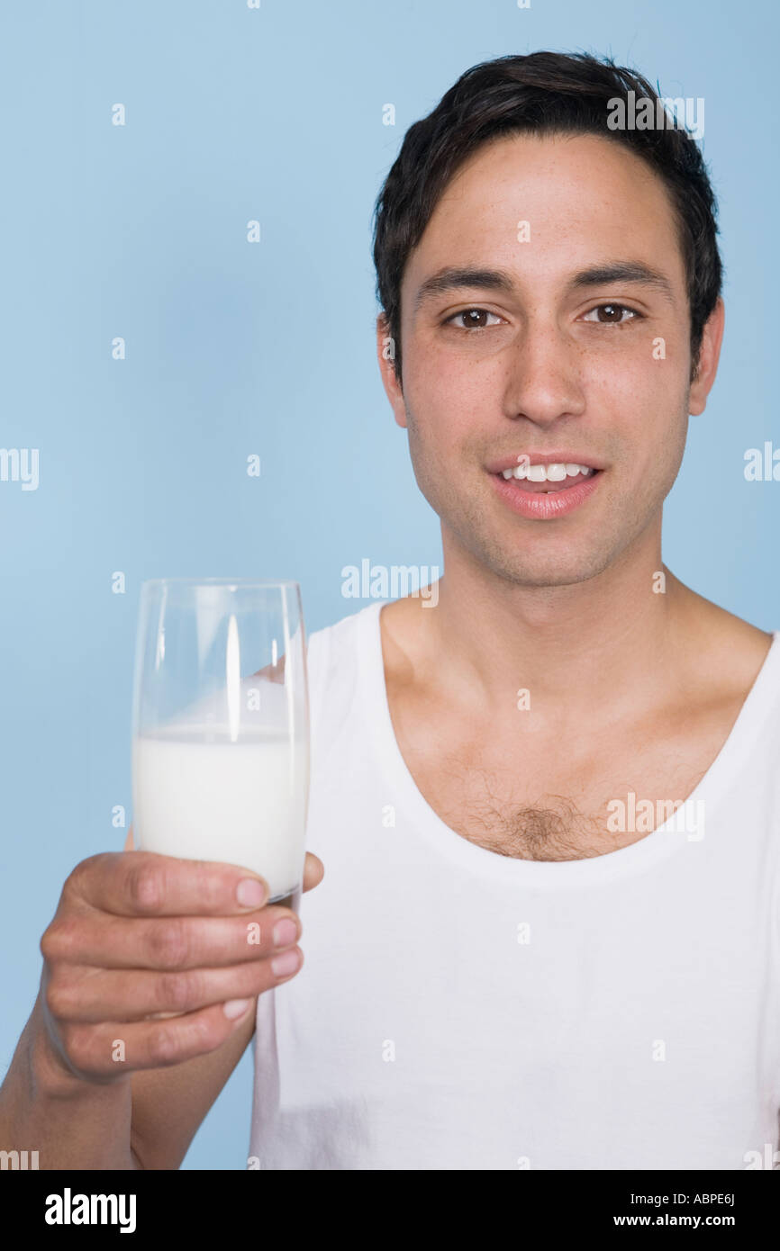 Man drinking glass of milk Stock Photo Alamy