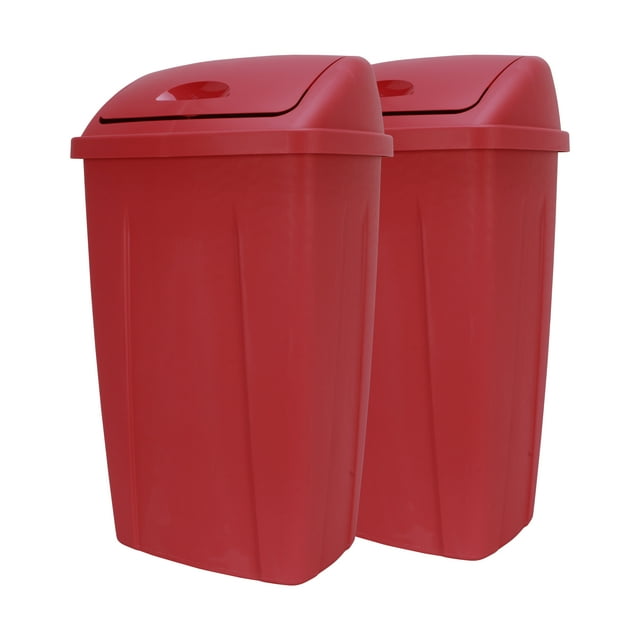Mainstays 13 gal Plastic Swing Top Lid Kitchen Trash Can, 2 Pack, Red