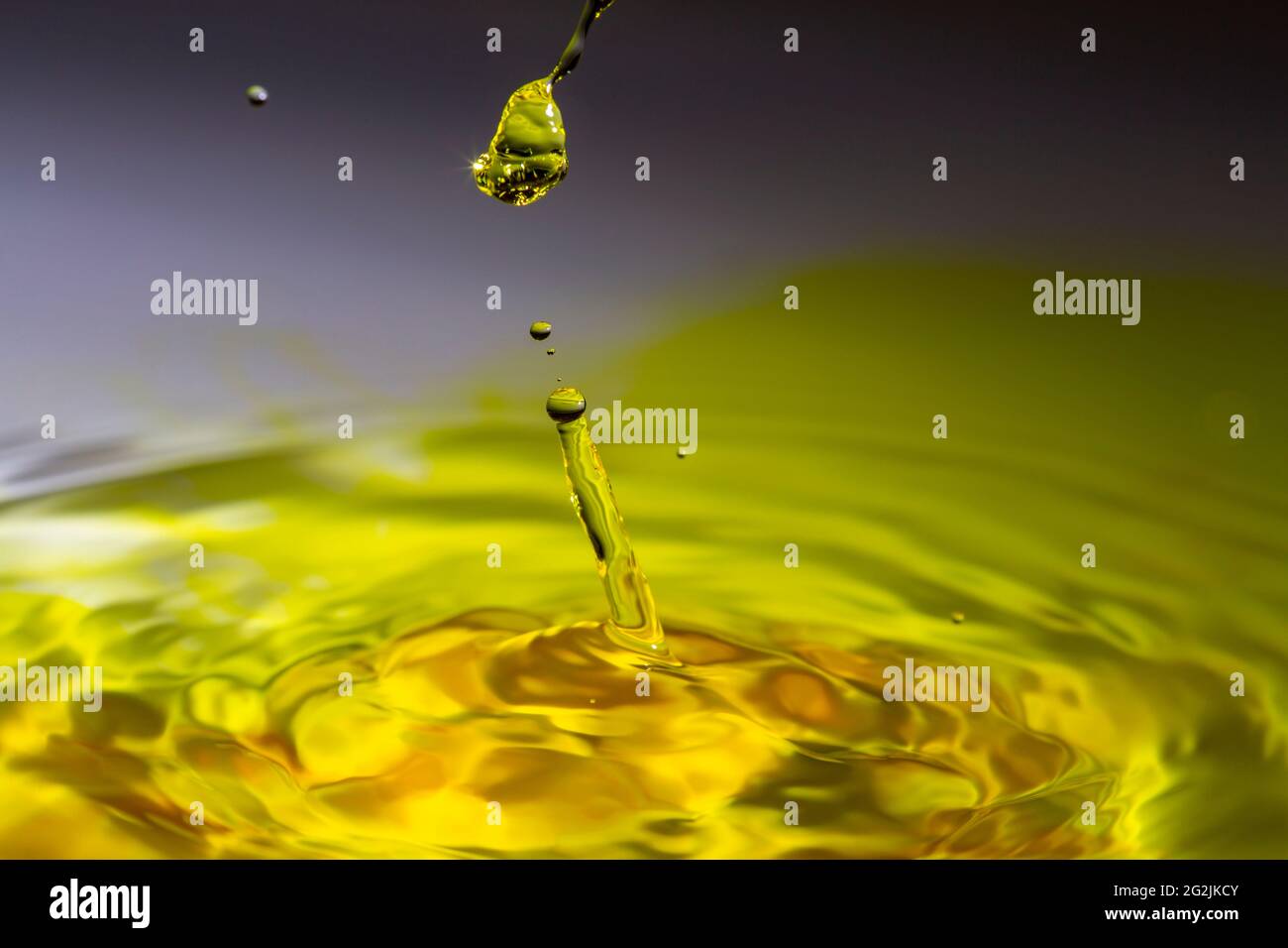 Clear water drop on a yellow tinted water Stock Photo Alamy