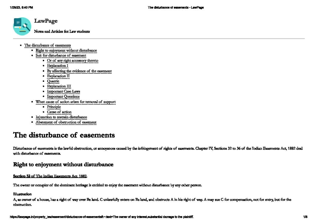 Disturbance of easement Property Law Studocu