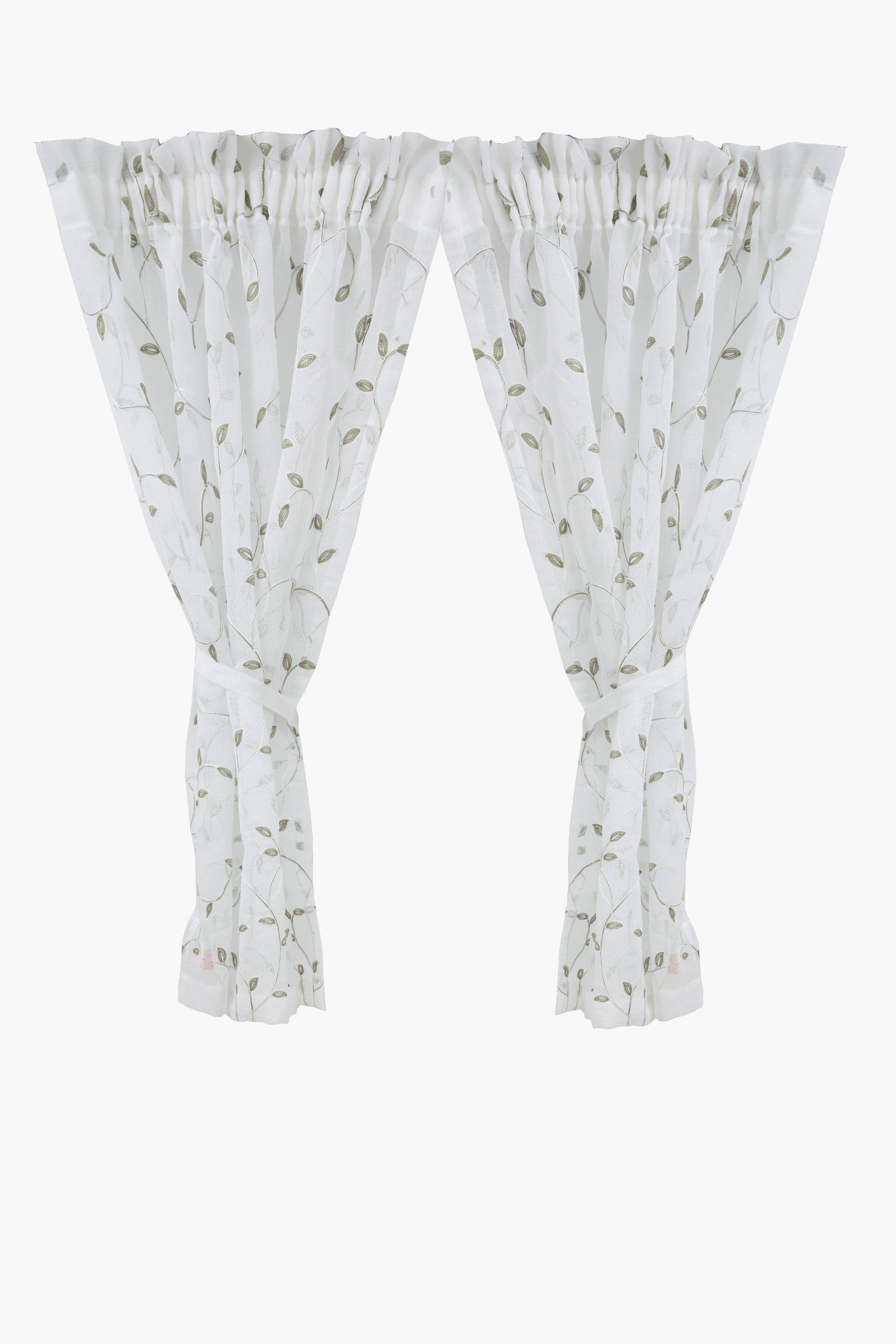 2 Pack Embroidered Vine Cafe Curtain, 110x120cm