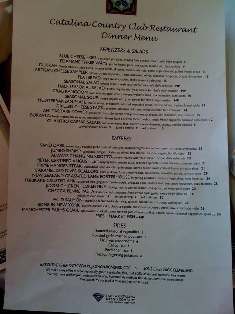 Catalina Restaurant Menu, Menu for Catalina Restaurant, Avalon, Avalon