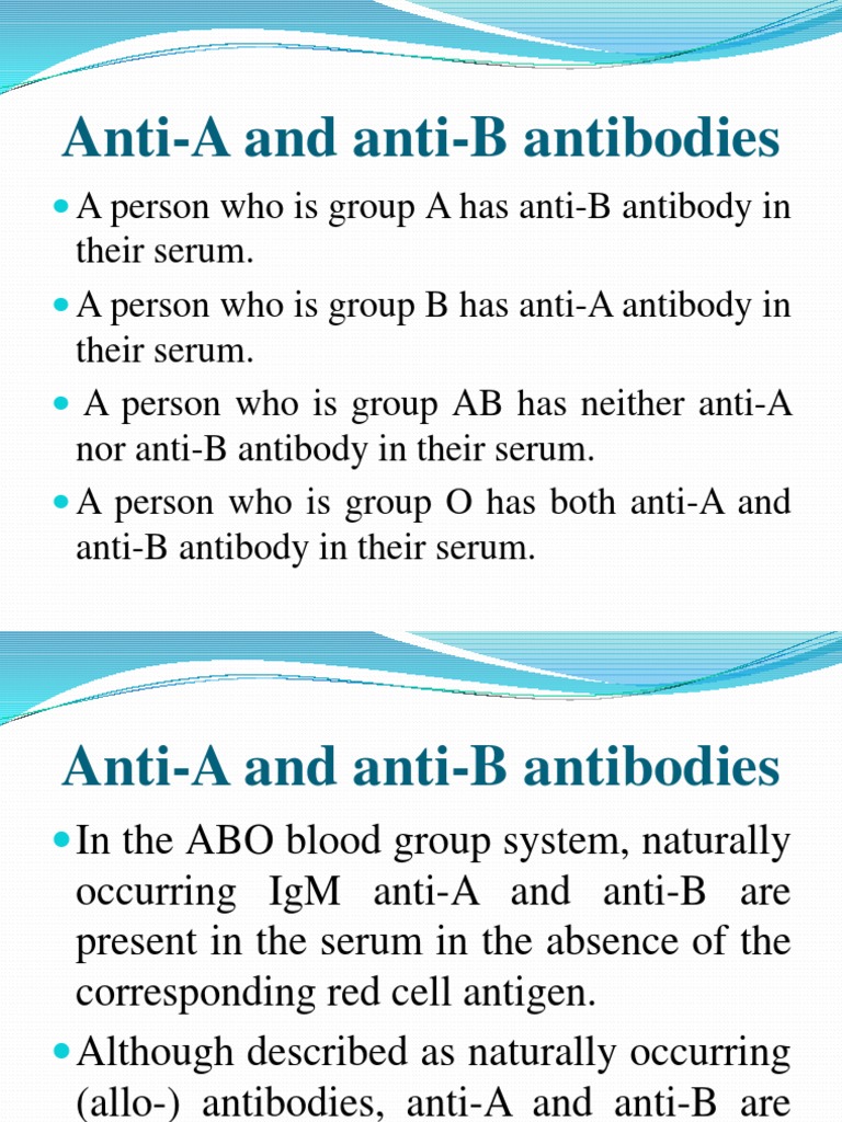 PPT BASIC ANTIBODY IDENTIFICATION PowerPoint Presentation, free What Does Anti B Antibodies Mean abo blood group is the most important blood group system in transfusion and organ transplantation medicine. the immune system forms antibodies against whichever abo blood group antigens are not found on the individual's rbcs. Thus, a group a individual will. Antigens are macromolecules (usually proteins) that. Abo antigens can be found on red cells,. blood type is. What Does Anti B Antibodies Mean.