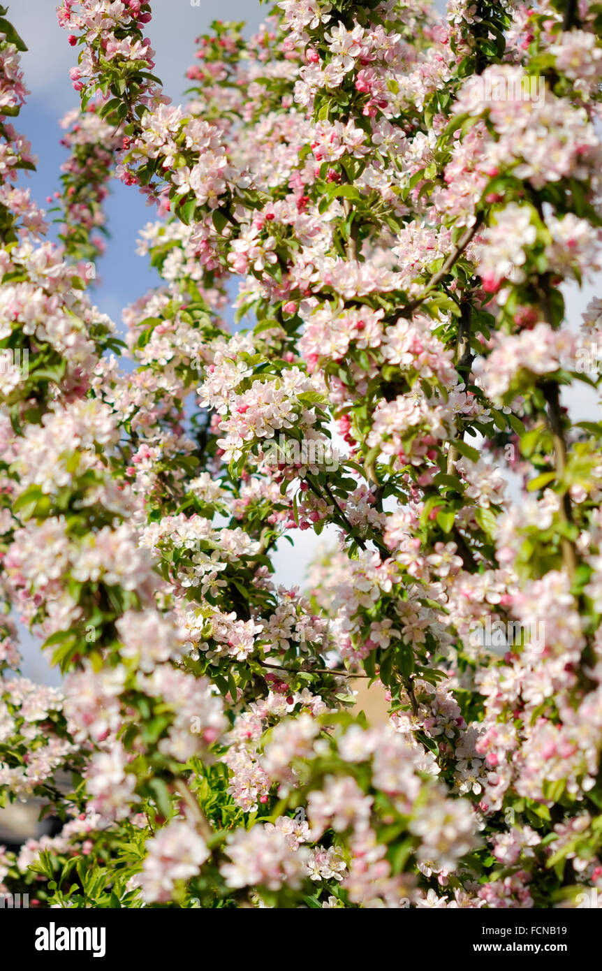 Pale pink crab apple blossom in spring sunshine Stock Photo Alamy
