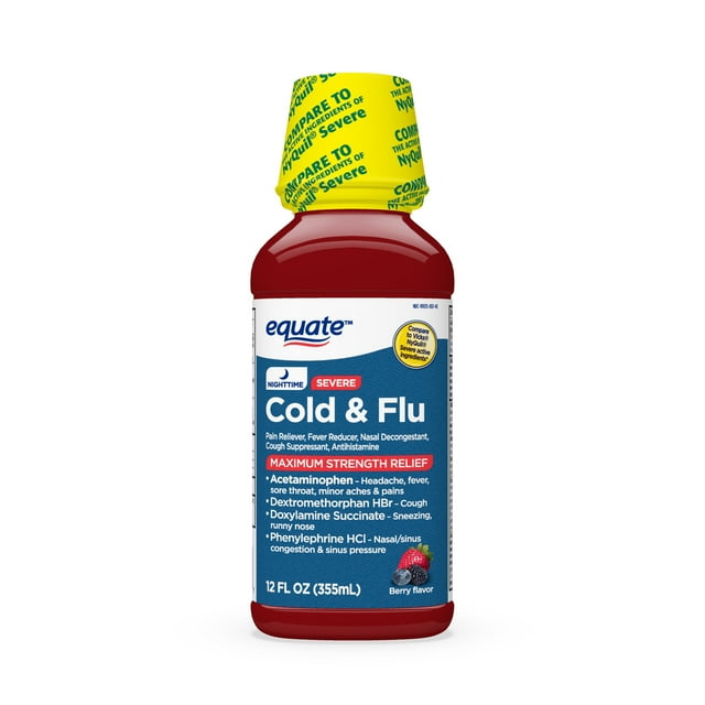 Equate Nighttime Severe Cold and Flu Relief, Max Strength, 12 fl oz