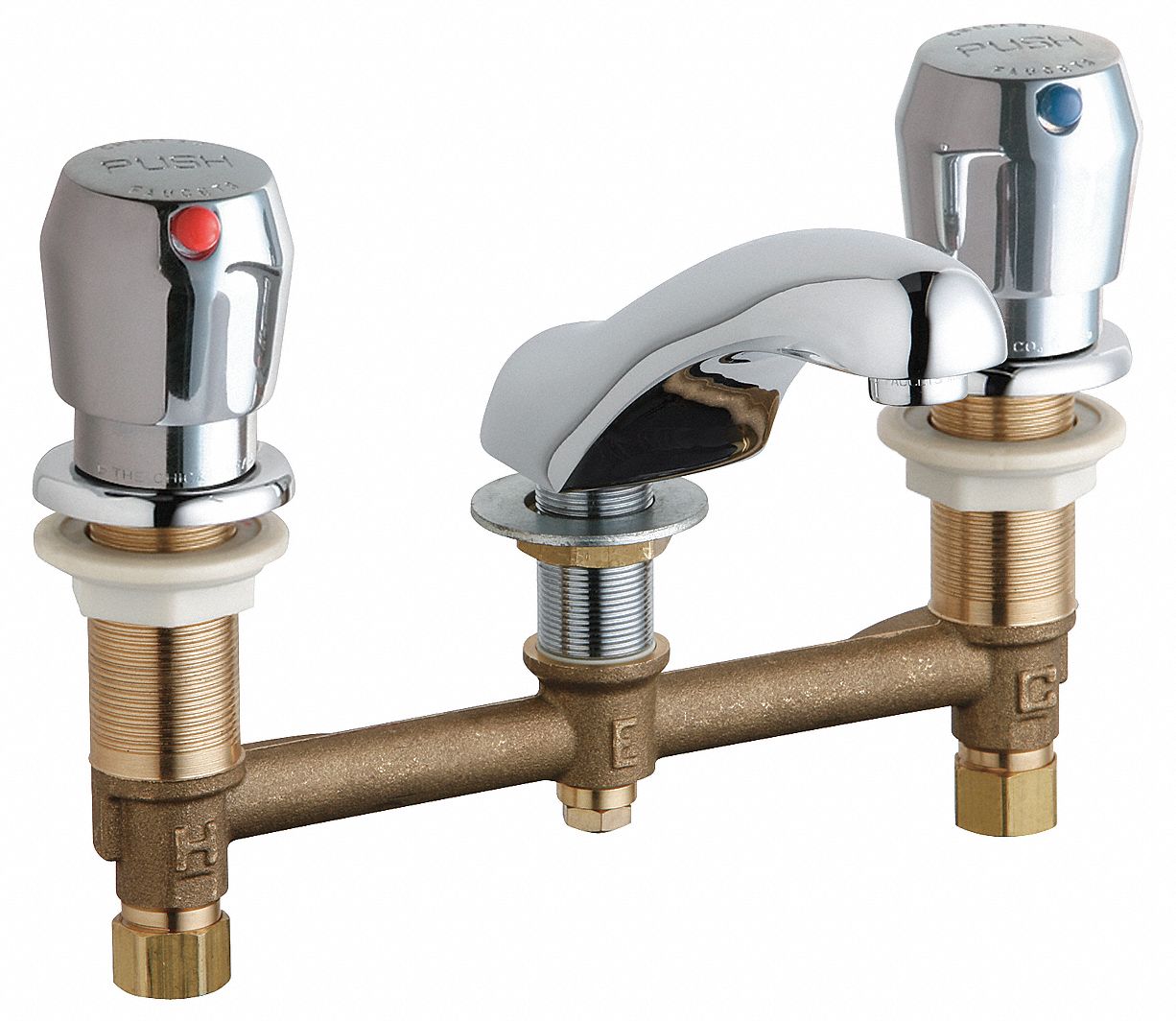 CHICAGO FAUCETS Brass Bathroom Faucet, Push Button Handle Type, No. of
