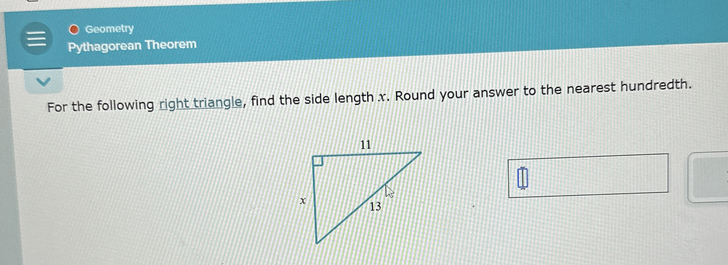 Solved For the following right triangle, find the side