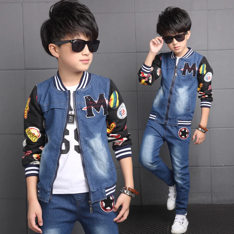 2016 New Denim Sets Boy Outwear Spring Autumn Boys Clothes Cowboy Suit