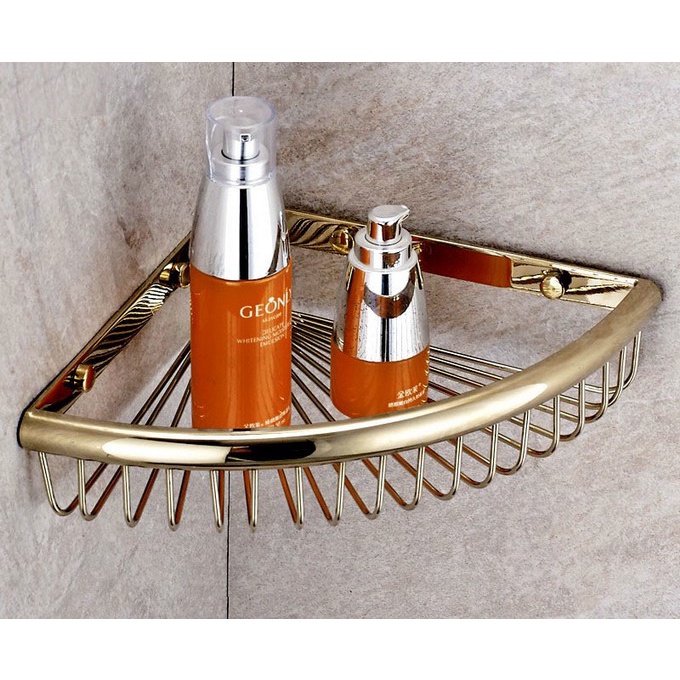 Polished Gold Bathroom Accessory Corner Shower Soap Tray Caddy Wire