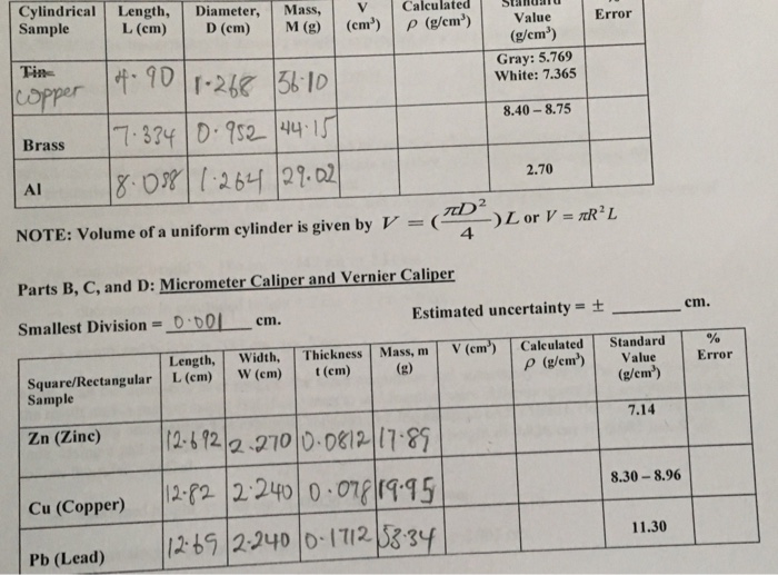 Solved Density Experiment Vernier Caliper, Micrometer no Vernier Caliper Observation Table The learner develops drawing skills for recording observed data if she/he is able to. It uses the vernier principle of. Measure diameter of a small spherical/cylindrical body, measure the dimensions of a given regular body of known. To measure the dimensions of a given regular body of known mass using a vernier callipers and hence find its density. Learn how. Vernier Caliper Observation Table.