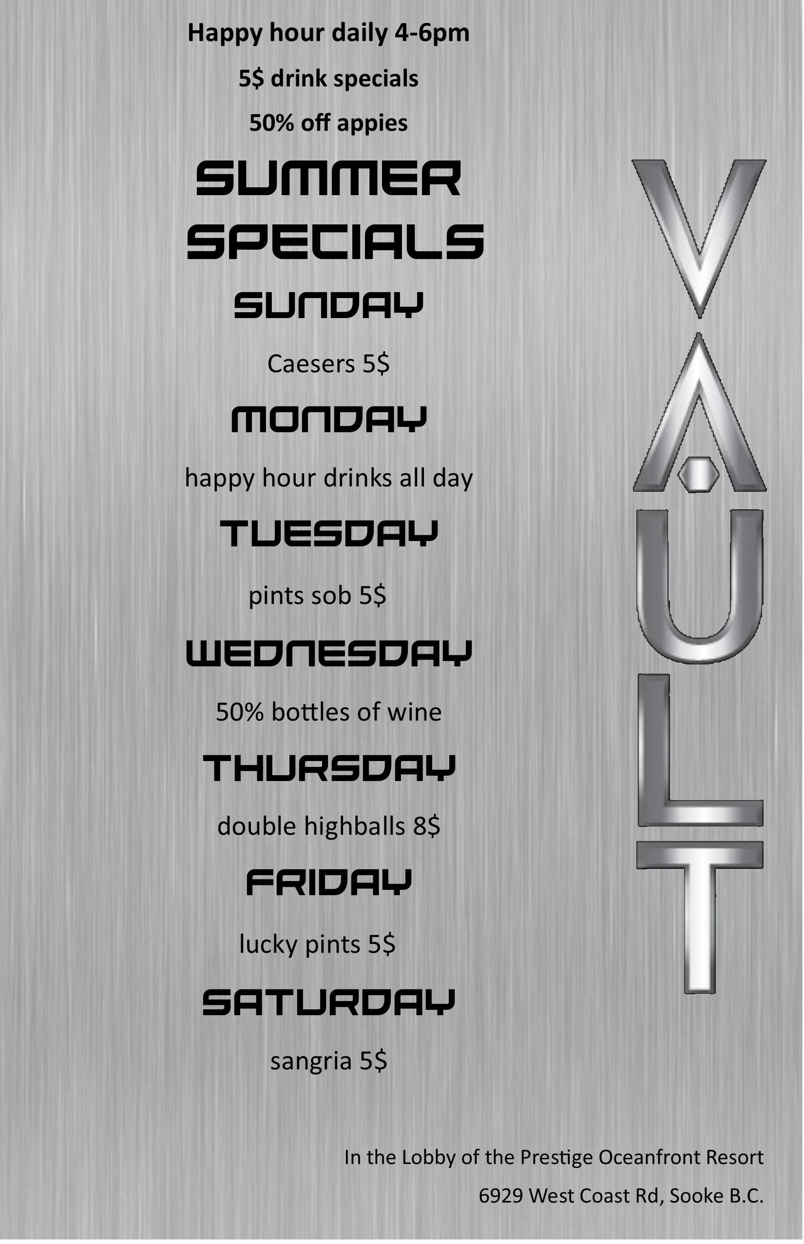 Sooke BC Vault Sports Lounge West Coast Grill