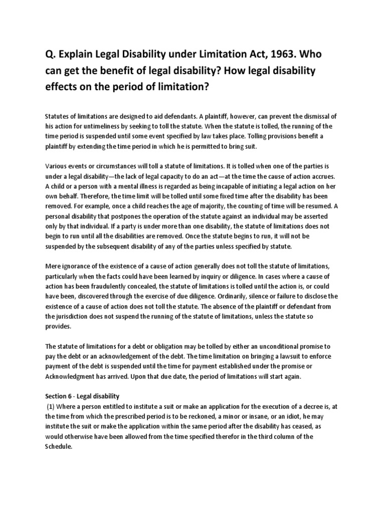 Legal Disability PDF Statute Of Limitations Lawsuit