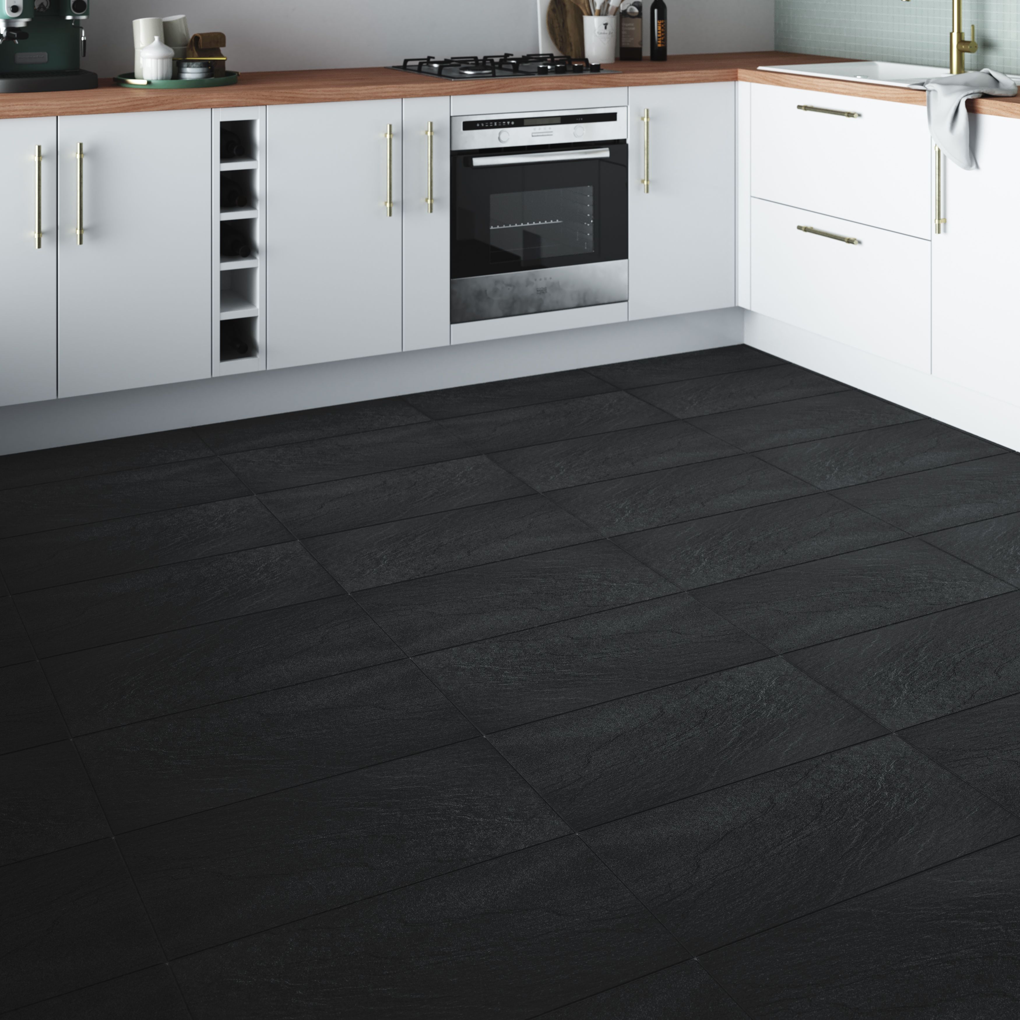 Cirque Black Matt Stone effect Ceramic Floor tile, Pack of 9, (L)333mm Stone Effect Floor Tiles B&Q Free standard delivery on orders over £75. stone effect floor tiles. natural stone tiles are a durable and attractive option for flooring, with variations in colour and pattern that add a unique and timeless look to any space. a beautiful range of stone effect tiles that faithfully replicate genuine crosscut stone with mineral veins and layered detail,. Stone Effect Floor Tiles B&Q.