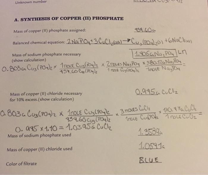 Solved Unknown number A. SYNTHESIS OF COPPER (II) PHOSPHATE
