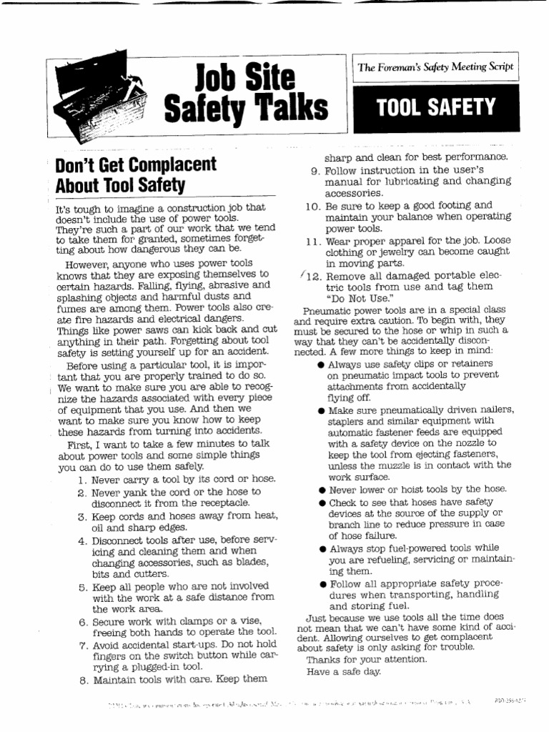 Tool Safety Toolbox Talk PDF Occupational Safety And Health