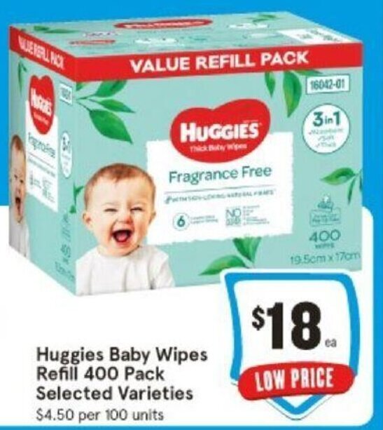 Huggies Baby Wipes Refill 400 Pack Selected Varieties offer at IGA
