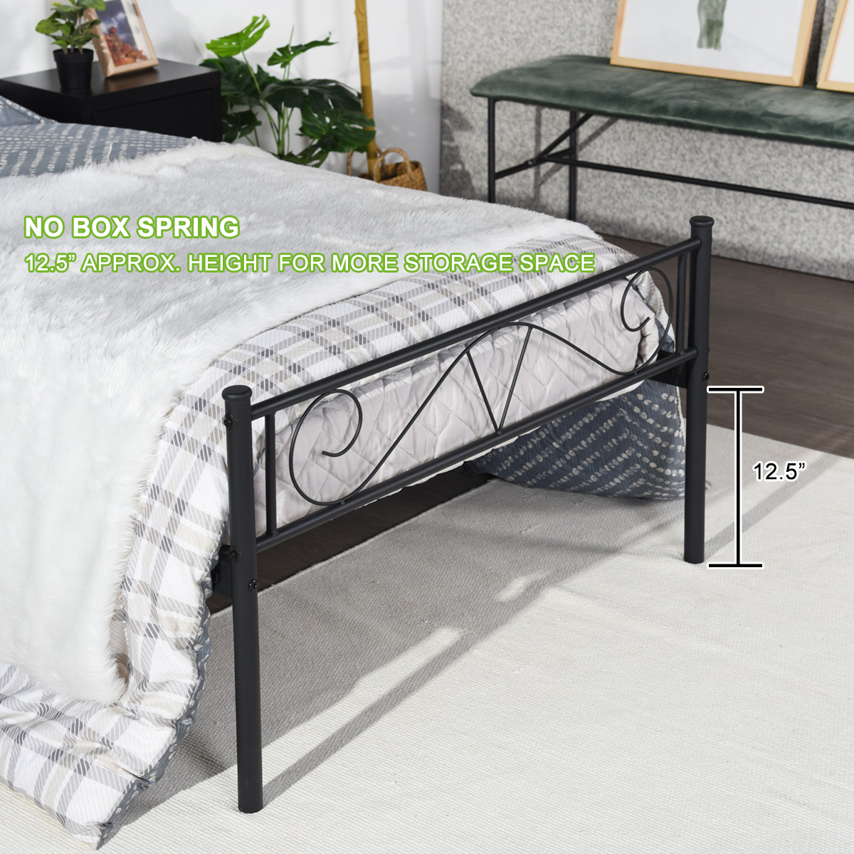 Victorian Queen Size 12.6"Metal Platform Bed Frame with Two Headboards Queen Metal Bed Frame Ebay get the best deals for queen size bed frame metal at ebay.com. C $132.56 to c $179.53. bed frame heavy duty metal platform twin full queen size w/headboard footboard. We have a great online selection at the lowest prices with fast &. explore a wide range of our metal bed frame queen selection. one heavy duty. Queen Metal Bed Frame Ebay.