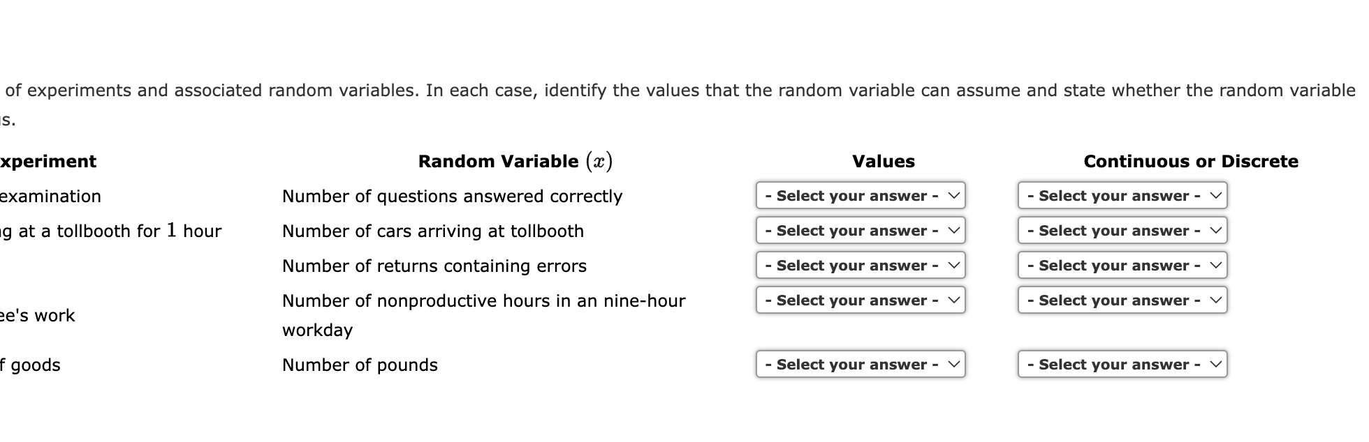Solved Listed below is a series of experiments and