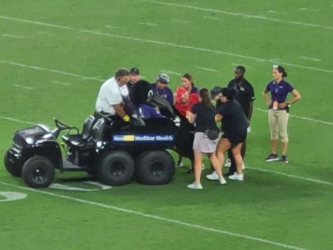 Prayers Up To Poe, The Ravens Mascot Who Tore His ACL During Tonight's Halftime Show Barstool