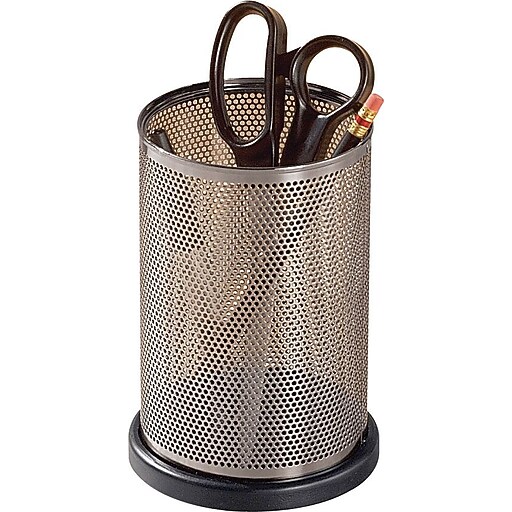 Distinctions™ Punched Gunmetal and Black Wood Jumbo Pencil Holder at Staples