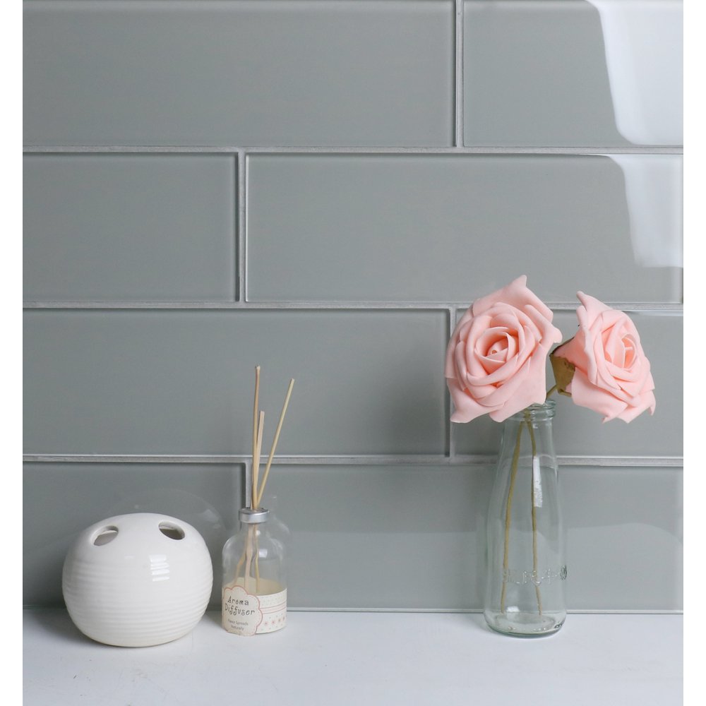 WS Tiles Sample Premium Series Individual 4" x 12" Glass Subway Tile in Soft Gray Walmart