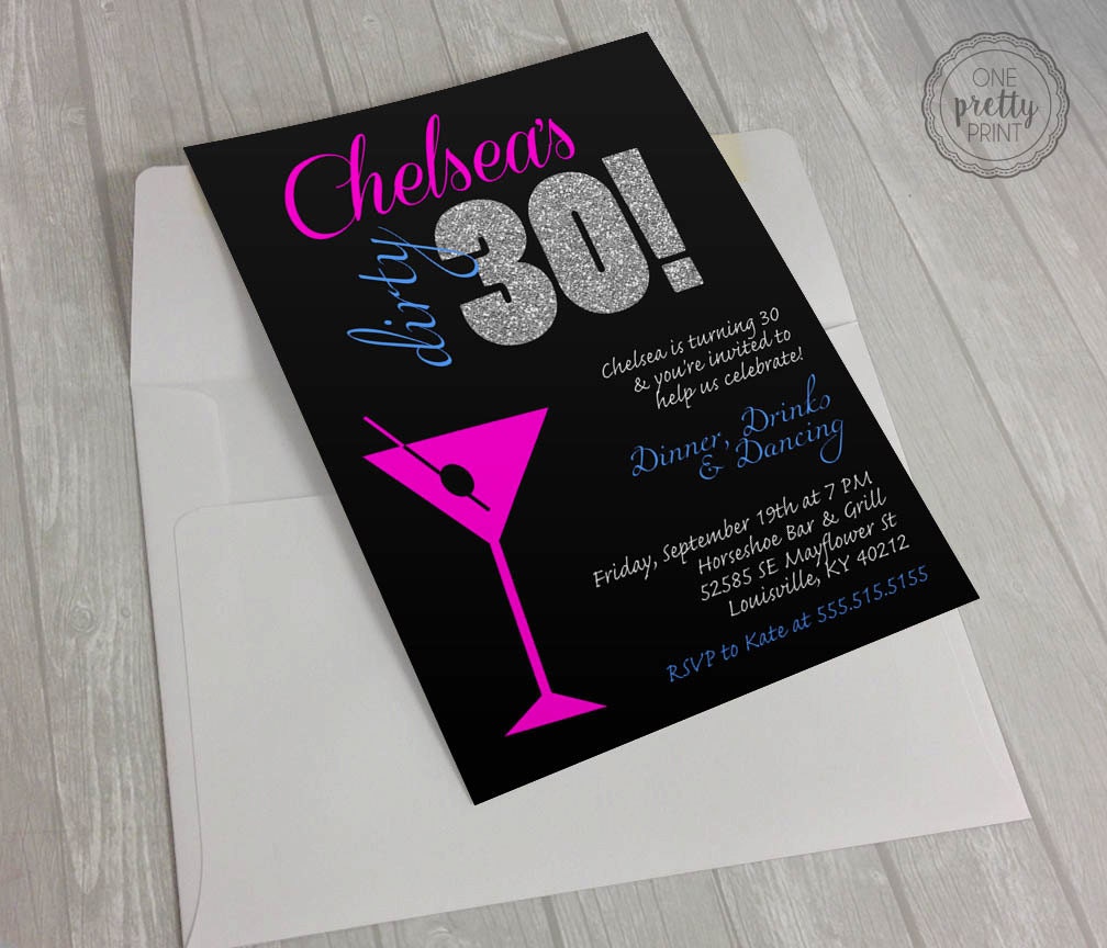 Fun 30th Birthday Invitation Dirty 30 with Martini Glass and Invitation Ideas For Dirty 30 Gather your loved ones on your special day. Download, print or send online with rsvp for free! Easily customize 'dirty 30' birthday invitation design with your text and photos. Keep track of your rsvps, and text your invitations to your guests. Check out our dirty 30th birthday invitation selection for the very best in unique or custom, handmade pieces from. Invitation Ideas For Dirty 30.