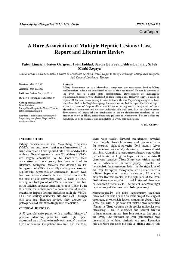 (PDF) A Rare Association of Multiple Hepatic Lesions Case Report and
