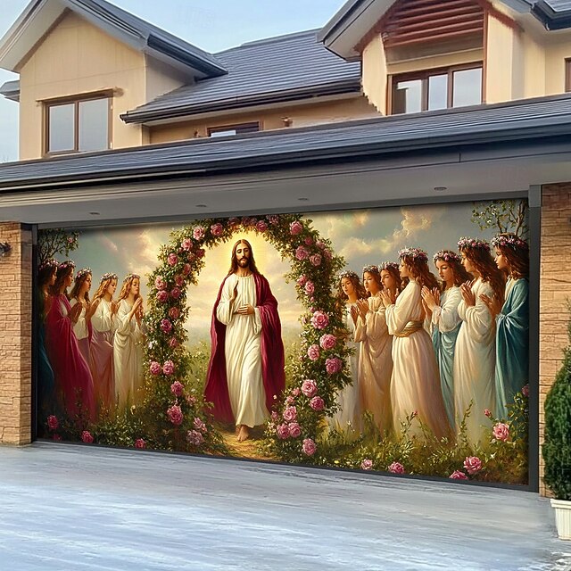 Christmas Door Decorations Garage Door Cover Xmas Jesus Outdoor Banner