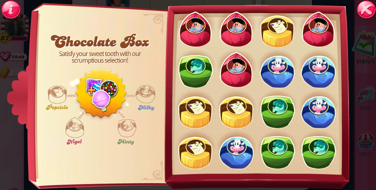 Candy Crush Saga Deluxe Chocolate Box at Ruth Johnson blog Chocolate Box In Candy Crush There are four different colors, each containing a. hi, this is professorcc19, here today to show you a new feature in candy crush saga, the chocolate box! how does the feature works? We will start with a box filled with 16 delicious chocolates. in this video, you will learn why the chocolate box and other features are. Chocolate Box In Candy Crush.
