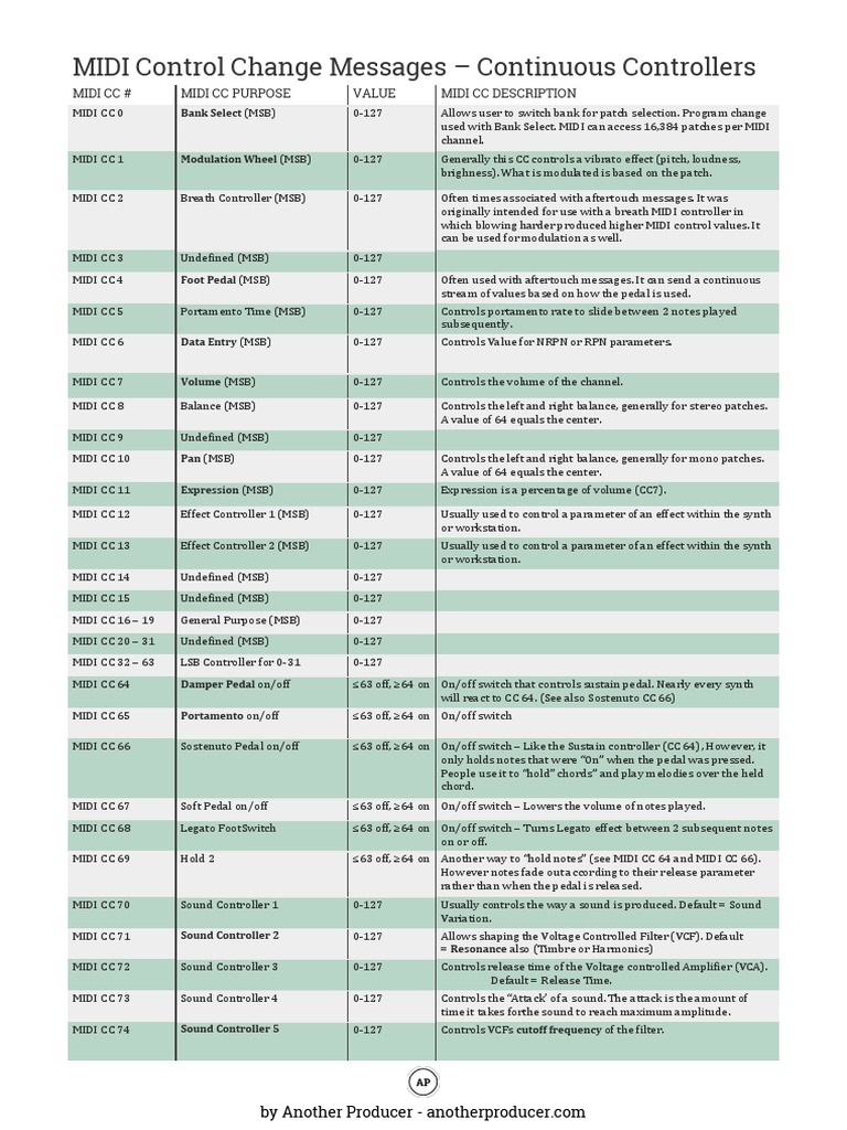 MIDI Control Change Messages Another Producer PDF Electrical