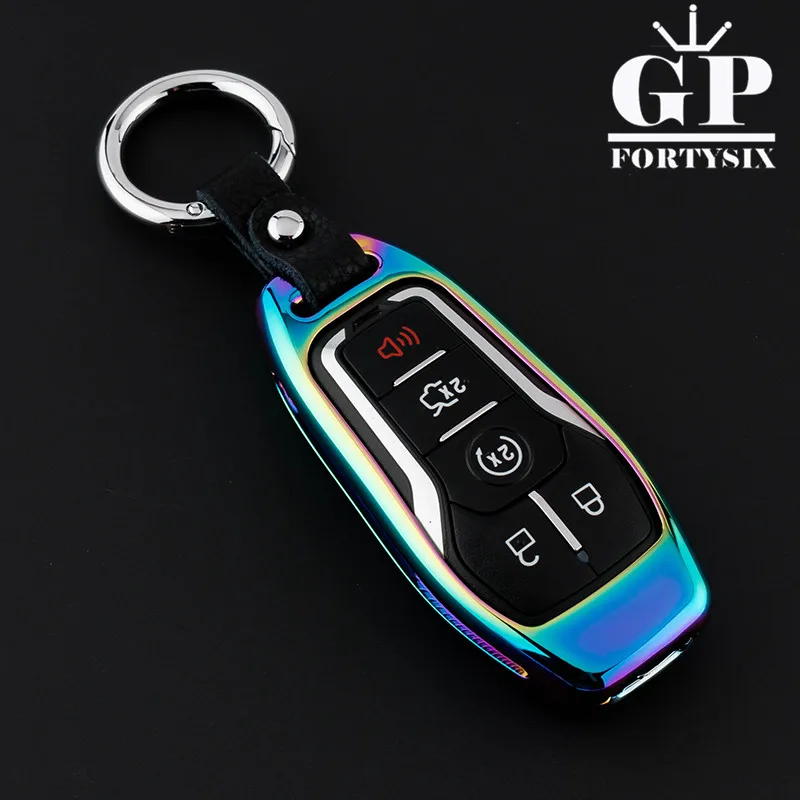 GPFORTYSIX Zinc Alloy +Leather Key Cover Case fob shell Holder For Ford Taurus Lincoln Mustang 5