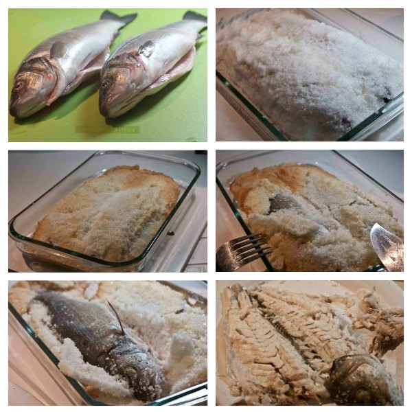 saltbaked fish (sea bass) with an ancient Greek recipe Pandespani