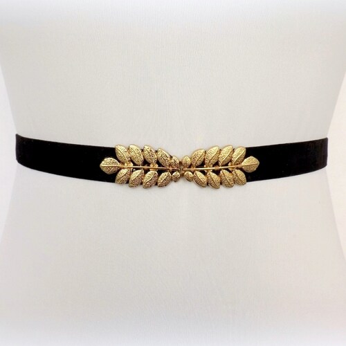 Black Velvet Elastic Gold Leaf Dress Belt Etsy Black Dress Belt Gold Order belts now with express delivery! shop for women's gold belts with next. check out our black belt with gold buckle selection for the very best in unique or custom, handmade pieces from our shops. women black casual leather belt with gold buckle ladies dress belt for jeans pant check out our black and gold dress. Black Dress Belt Gold.