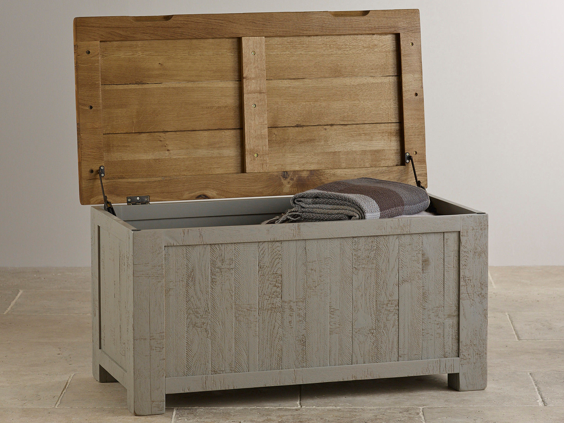 Clermont Painted Rough Sawn Solid Oak Storage Box Oak Furniture Land