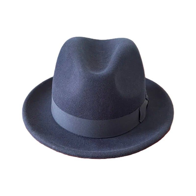 British Short Brim Fedora Hat Men Wool Felt Trilby Hat Big Head Satin