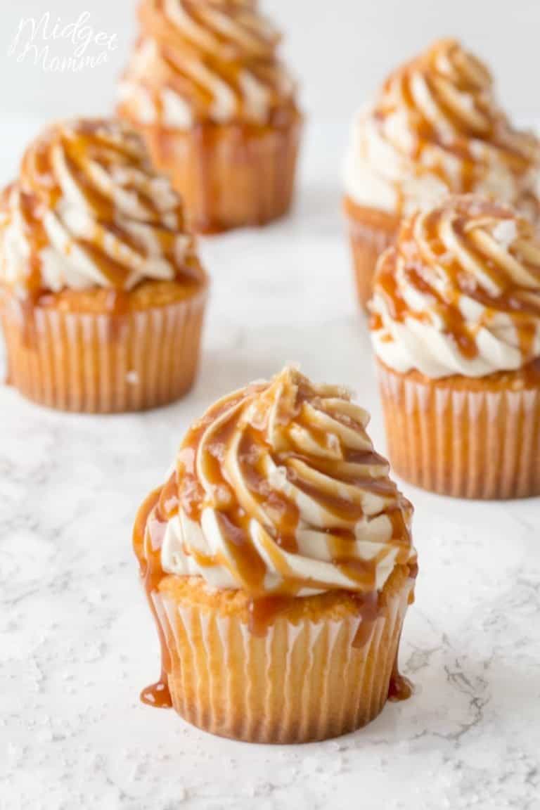 Salted Caramel Cupcakes » Tide & Thyme Kiss Caramel Cupcakes These salted caramel cupcakes take a shortcut with boxed cake mix and a homemade swirled salted caramel frosting. These caramel cupcakes are a soft yellow cake filled with salted caramel and then topped with a swirl of caramel swiss meringue buttercream. The combination of the rich yellow cake and salted caramel is divine! We've topped them with a decadent homemade. Kiss Caramel Cupcakes.