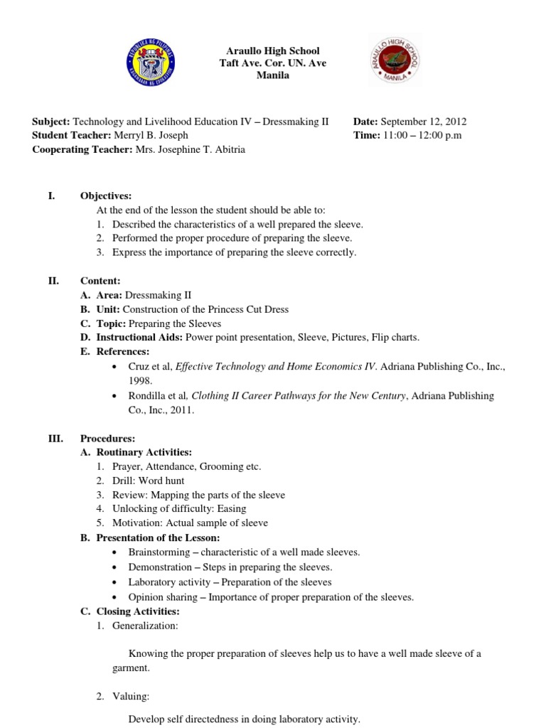 Traditional Lesson Plan PDF Seam (Sewing) Lesson Plan