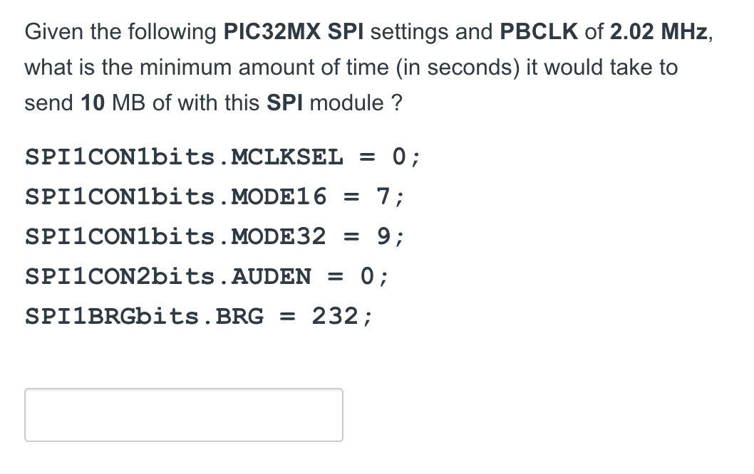 Solved Given the following PIC32MX SPI settings and PBCLK of